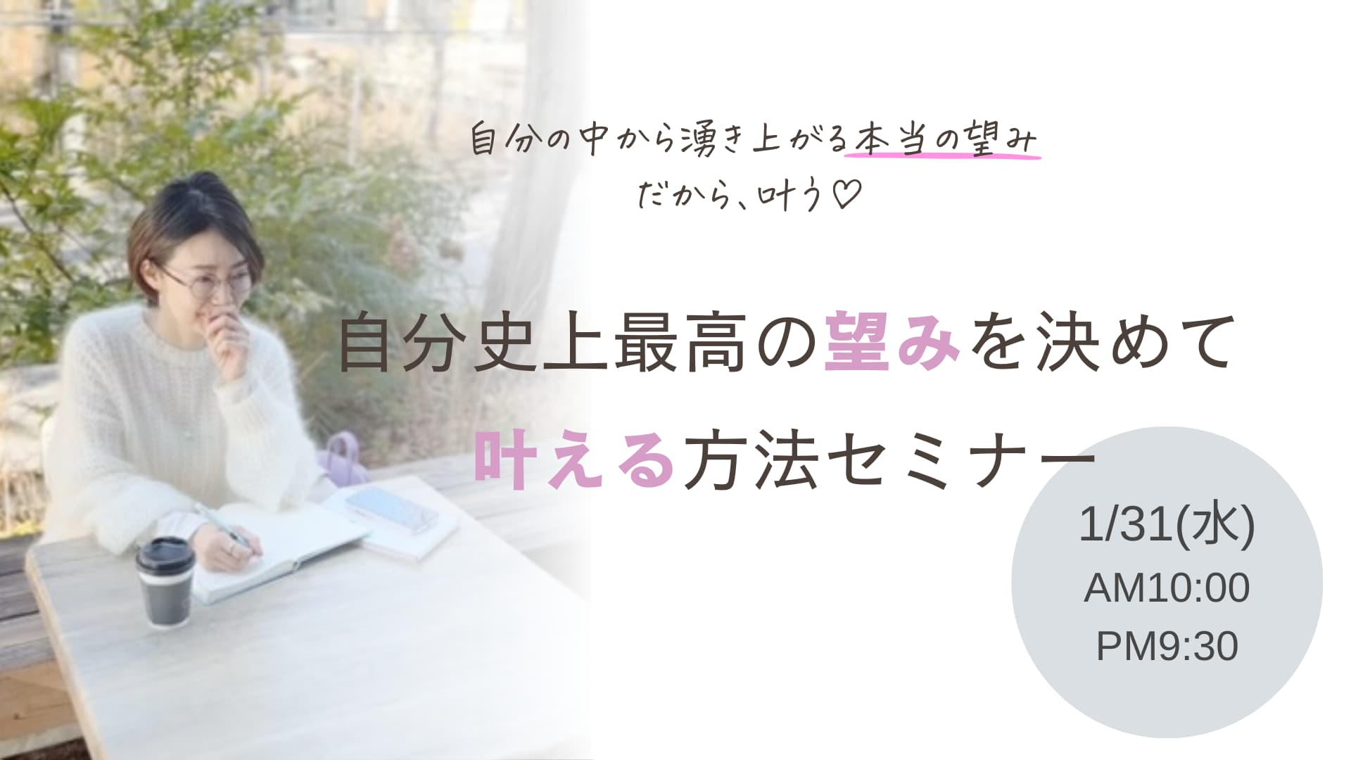 【自分史上最高の望みを決めて叶える方法セミナー】